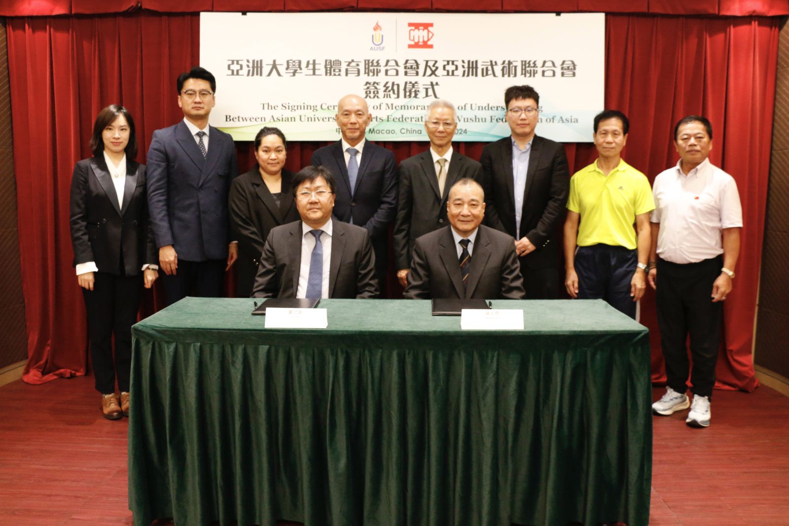 Macau, China – The Asian University Sports Federation (AUSF) and the Wushu Federation of Asia (WFA) officially signed a Memorandum of Understanding (MOU) in Macau, China, marking an important step forward in promoting the development of Wushu.