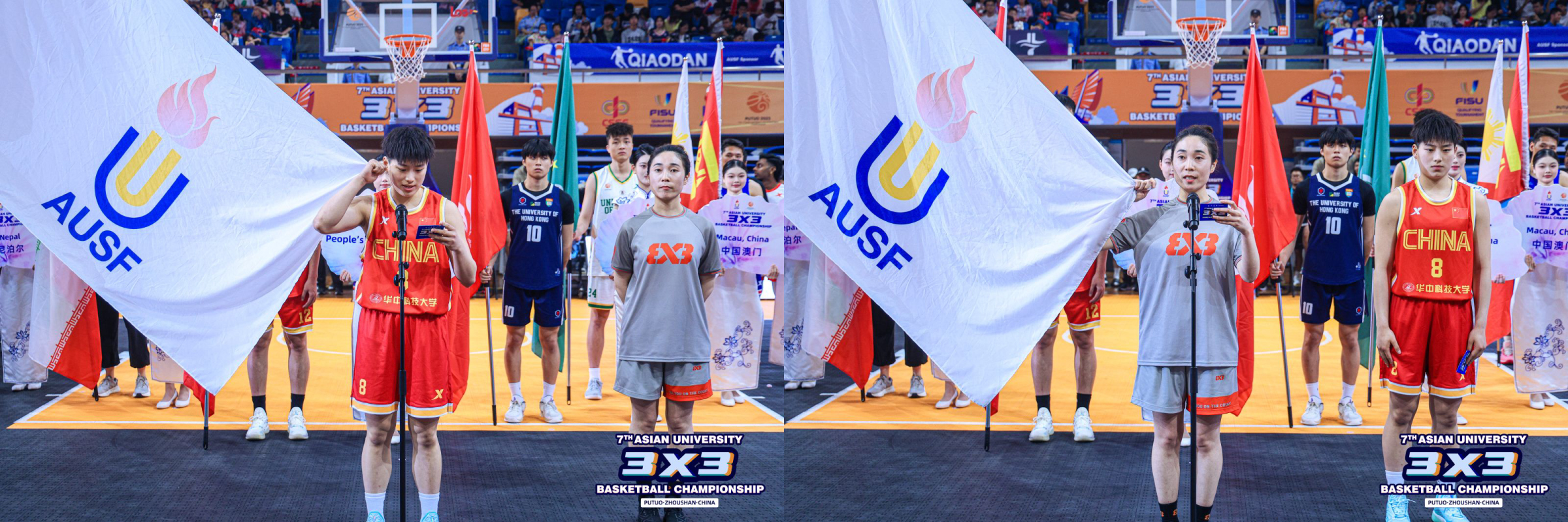 Dr. Liu Lixin declared the 7th Asian University 3×3 Basketball Championship officially open. The AUSF flag was brought into the venue, and all attendees stood as the flag was raised and the anthem played. Representatives of the athletes and referees then took their oaths.